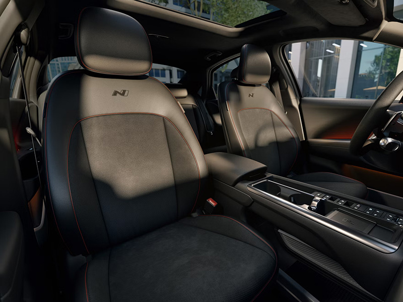 Sėdynėse su „N Line“ ženklu, raudonų dygsnių siūlėmis ir raudonais siūlių apvadais patogu sėdėti ir užtikrintai valdyti automobilį. Jos gali būti su tekstilės ir odos arba dirbtinės zomšos ir odos apmušalais.